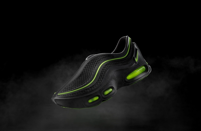 The silhouette builds on the futuristic form of the first-of-its-kind Air Max 1000, developed with Zellerfeld using the company’s new multicolor-ready Gen3 printers, by stacking the same 3D-printed chassis with a “Big Bubble” Max Air unit in the heel and a smaller Max Air unit in the forefoot to provide a consistently soft, smooth and just-springy-enough feeling underfoot.