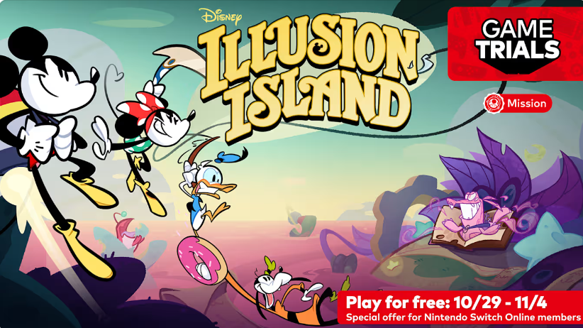 From October 29 at 10 a.m. PT to November 4 at 11:59 p.m. PT, Nintendo Switch Online members* can download and try the full Disney Illusion Island game at no additional cost.