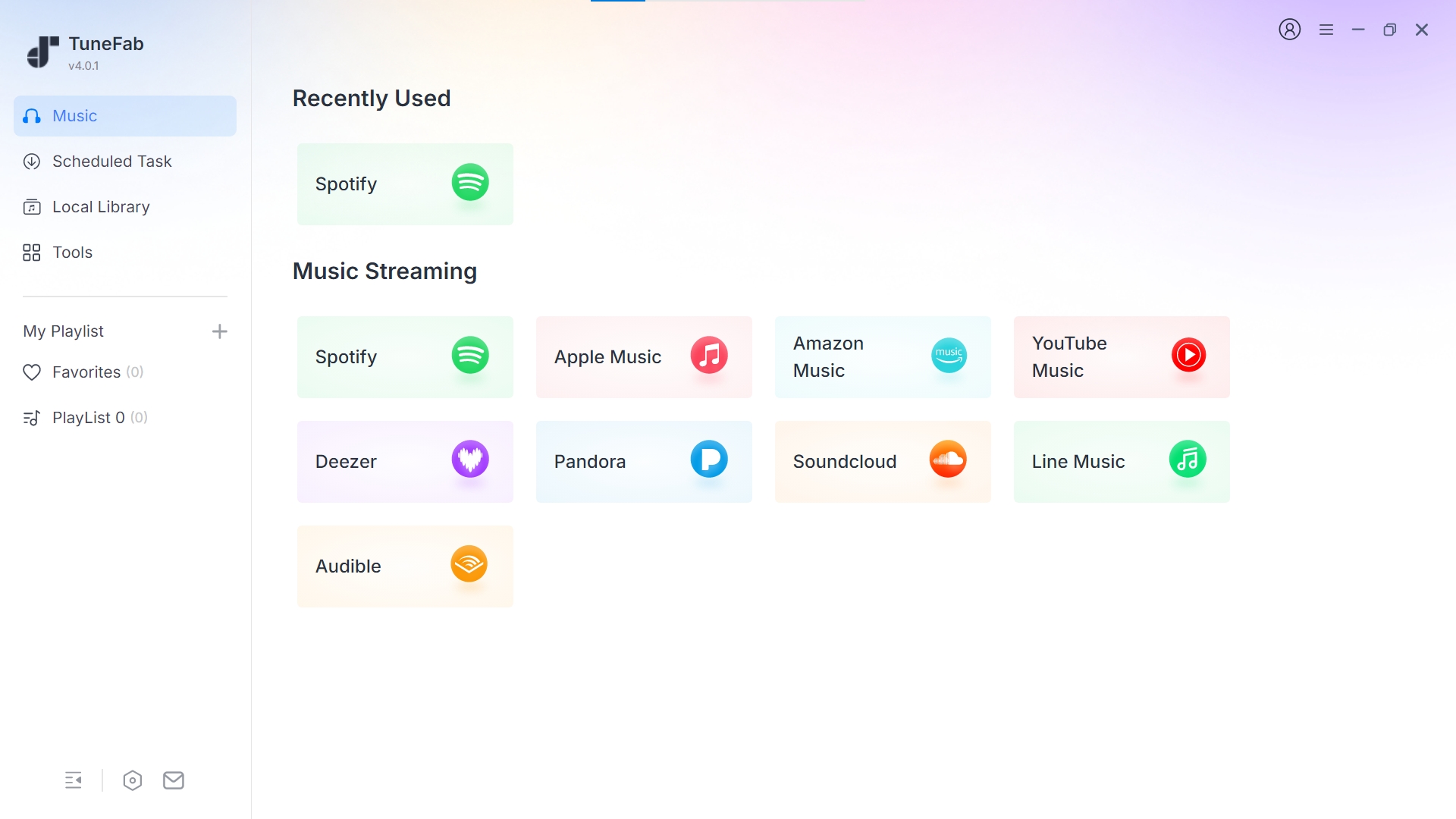 Open TuneFab and select your desired streaming service (log in optionally for higher accuracy).