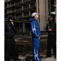 At the heart of the range are two hero pieces: the Technical Jacket, co-ord Pants, and the Water Reactive Jacket. Sold separately, the Technical Jacket and Pants feature a breathable polyamide shell and mesh lining, with a panelled construction that enhances movement and comfort. Ventilation zips nod to classic Umbro design cues, while reflective details add a functional edge. The Water Reactive Jacket, crafted from waterproof nylon Taslan, features a 15,000mm hydrostatic test score which when wet reveals a hidden Umbro x MERTRA monogram, a subtle meeting of innovation and style.