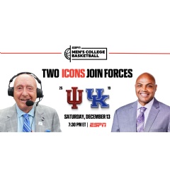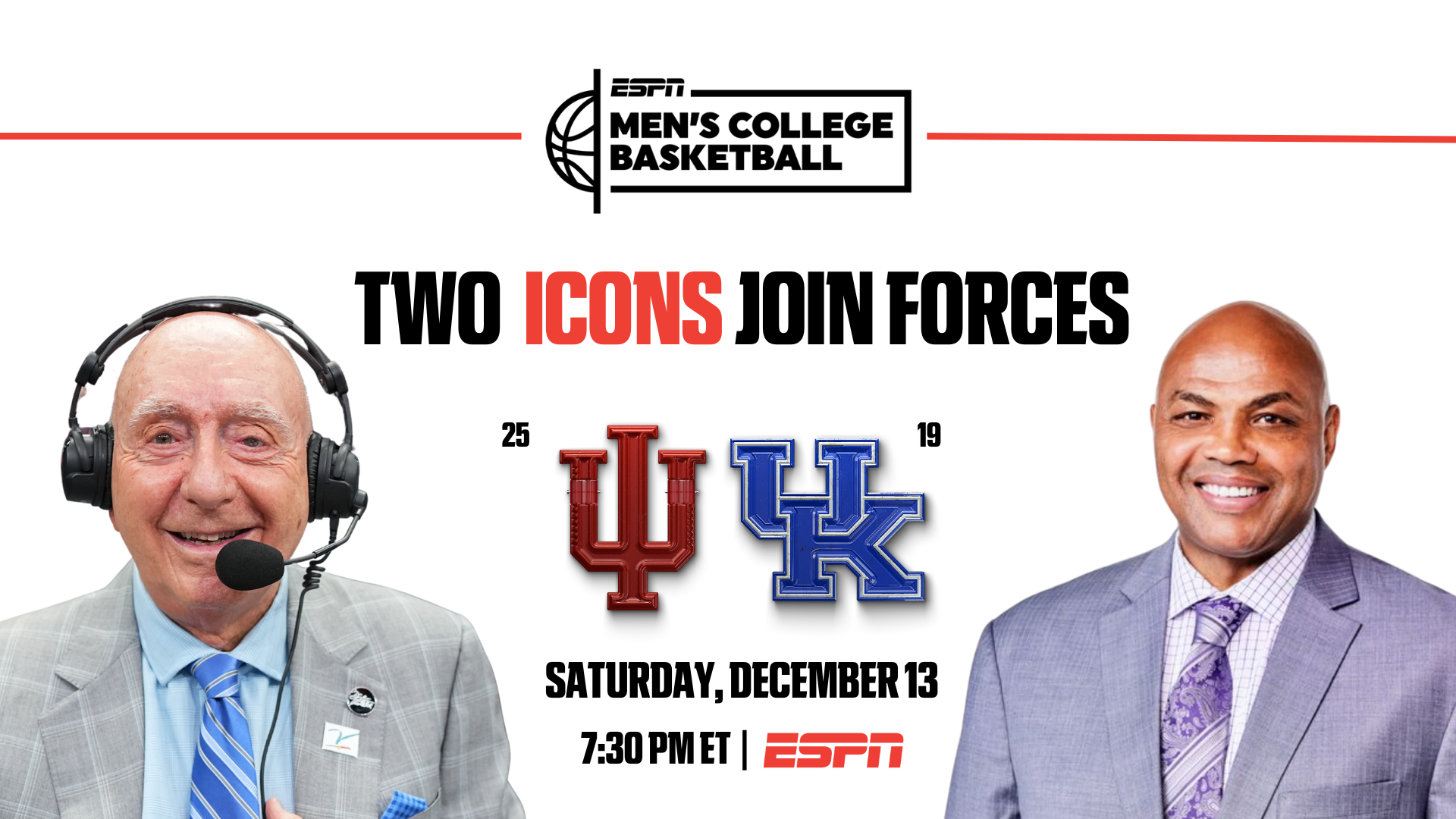 Vitale and Barkley, members of both the Naismith Memorial Basketball and Sports Broadcasting Halls of Fame, will first call the No. 25 Indiana at No. 19 Kentucky men’s basketball game Saturday, December 13 on ESPN (7:30 p.m. ET) with play-by-play voice Dave O’Brien.