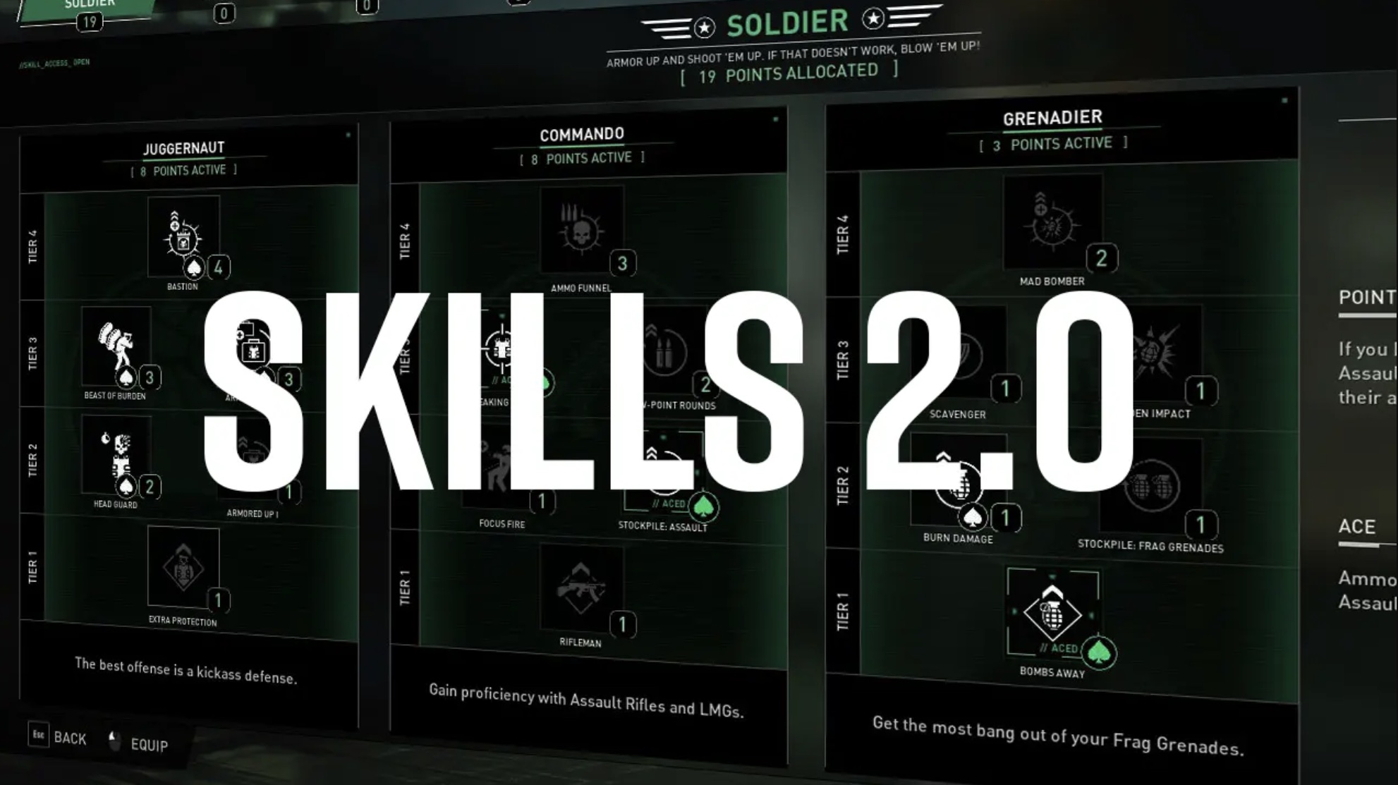 - Rebuilt, tree based system – The entire layout has been redesigned into themed categories with clear fantasies such as armored Juggernaut, agile Ghost, crowd controlling Puppet Master, gadget focused Engineer and more, making it easier to understand what each line is about at a glance.