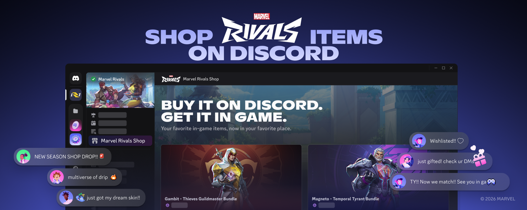 Marvel Rivals chosen as the first partner to integrate shopping and gifting natively across Discord