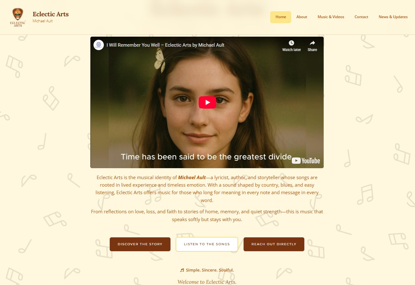 Fans can learn about the inspiration behind specific songs, including the moments that sparked their creation and the personal experiences that shape each composition. By combining heartfelt lyrics with warm, approachable arrangements, Eclectic Arts ensures every piece resonates with authenticity and emotional depth.