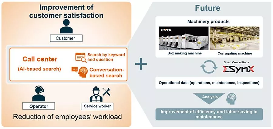 The Group’s on-call support is a key point of contact for customers, answering inquiries about the operation of products 24 hours a day, 365 days a year. With the Group’s business expanding in overseas markets, there has been an urgent need to improve the efficiency and quality of this support. This addresses the issues of operator workload, variance in quality due to skill gaps, and the work involved in registering call records that were faced under the previous system.