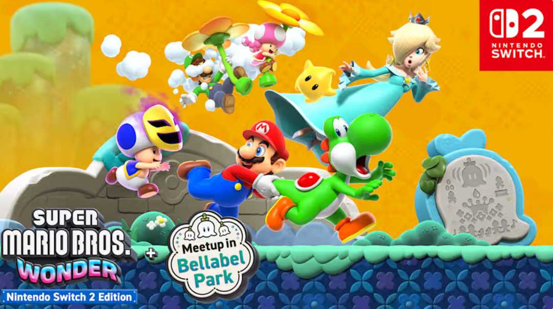 uper Mario Bros. Wonder – Nintendo Switch 2 Edition + Meetup in Bellabel Park brings new co-op and competitive gameplay to the Flower Kingdom, in addition to other new content and enhancements specifically for Nintendo Switch 2. Gather friends and family and visit Bellabel Park, a new area of the Flower Kingdom that features two large plazas filled with attractions. Team up or face off in challenges like Fast Cash: Tip Tap’s Coin Spree where you collect as many gold coins as you can, or Knock ‘em Back: Bubble Blaster where you duke it out and try to survive with the most lives intact.