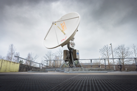 The requirements? Space for the satellite dish, which is 2.4 metres in diameter. Good visibility of the sky in all directions because of the way it moves and tracks the satellite. And finally, a location which could take the weight of the dish, which is about one tonne.
