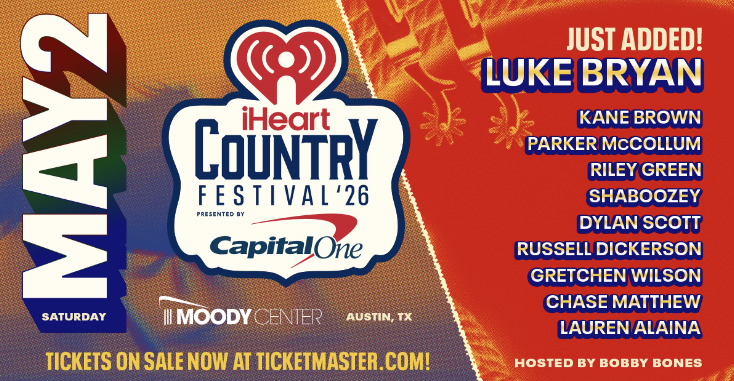 WHAT: iHeartMedia announced that Luke Bryan is joining the lineup for the 2026 iHeartCountry Festival Presented by Capital One making its return to Austin, TX at Moody Center on Saturday, May 2.