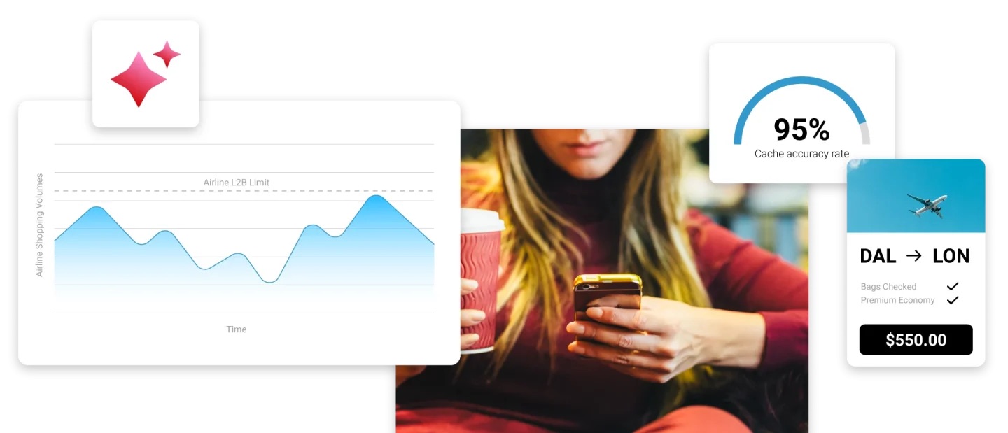 - One solution for every air source: Cache-powered Intelligent Shopping gives developers a single, consistent framework to work with – no more juggling different logic, timeout rules, or failover processes for each content source. By standardizing how results are structured and delivered, it streamlines key workflows like sorting, ranking, and personalization. The result: faster development, less costly maintenance, and a unified experience across airlines and content types, not limited to NDC.