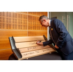 - Occasion marked by CEO and Board of Directors signing final wooden exterior louvre panel