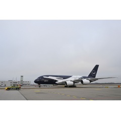 35 colleagues worked on the Airbus A380 for exactly 34 days. They brought the 47-meter-long stylized crane on the aircraft to life and painted a total area of over 4,000 square meters. That is equivalent to about 16 tennis courts. The Airbus with the registration D-AIMH will start regular service in March.