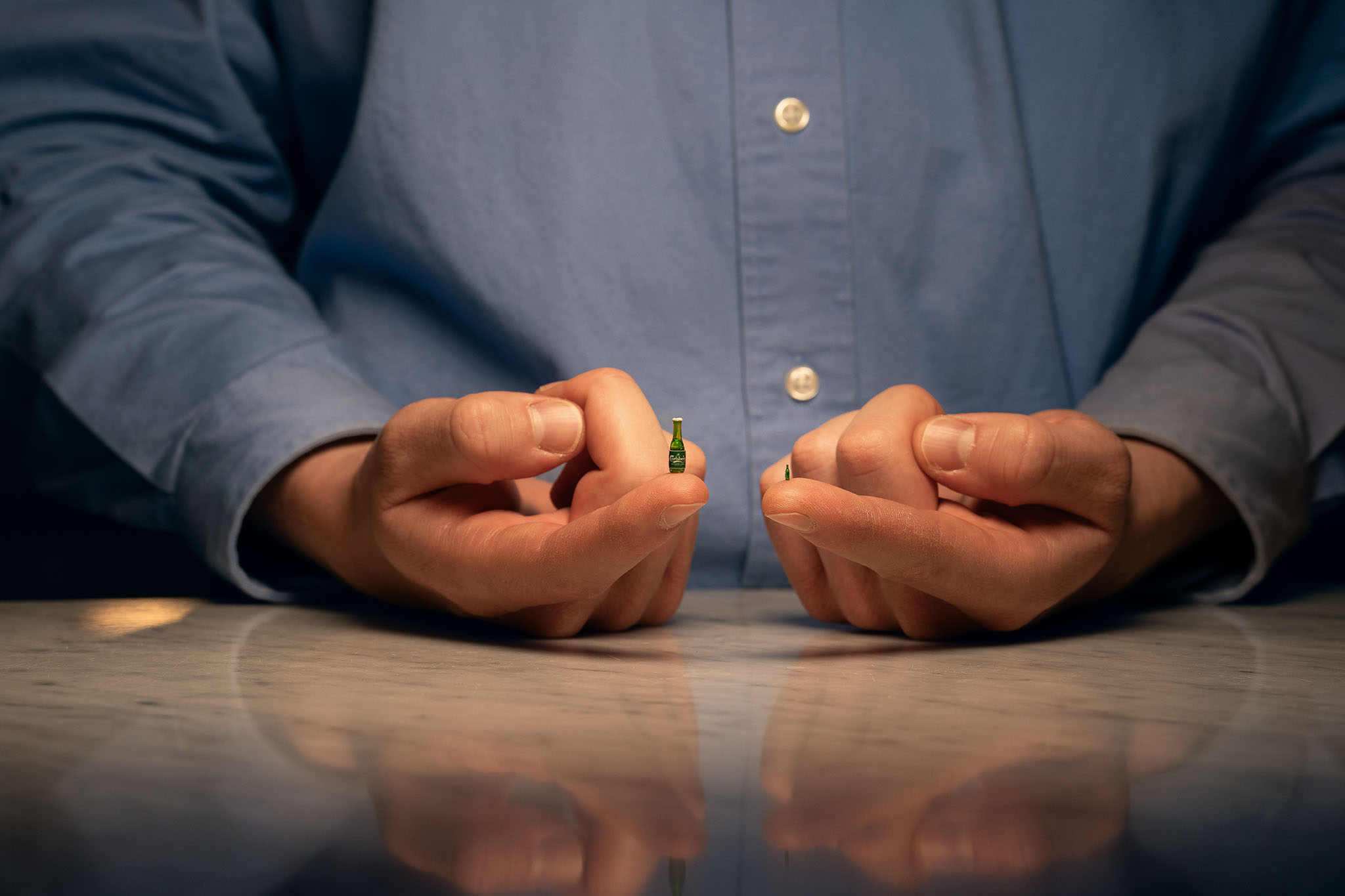 The quintet are currently studying at The Royal Institute of Technology in Stockholm, Sweden, and drew on their academic expertise when developing the world’s smallest beer. Using a digital 3D model of the classic 33 cl Carlsberg bottle, the students employed a high-precision 3D printer to determine just how small the bottle could be made. Four millimetres proved to be the absolute limit. After cleaning the inside with a microcannula and curing it under UV light, the bottle was complete. Miniature artist Åsa Strand then assisted with creating the cap, the label as well as filling, and coloring, the bottle.