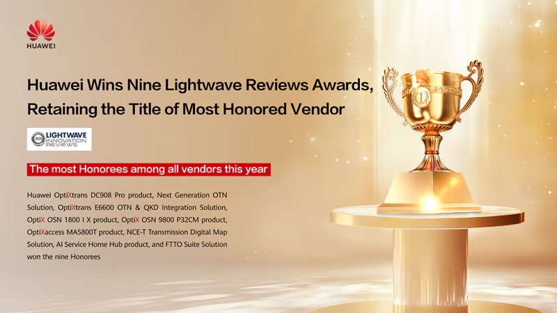 Huawei Wins Nine Lightwave Innovation Reviews Awards, Retaining the Title of Most Honored Vendor
