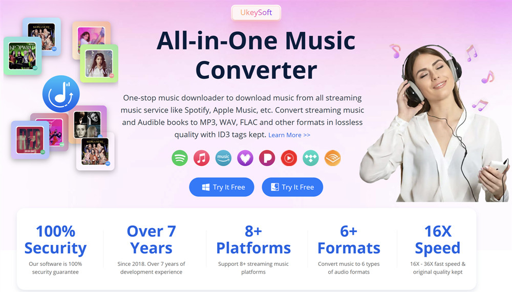Founded with the mission to bypass streaming music limitations, UkeySoft empowers users to take full control of their digital entertainment experience. It offers a suite of software solutions compatible with major streaming platforms, all designed to deliver a seamless, high-quality music downloading experience. Here’s a closer look at their product lineup: