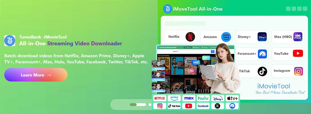 The newly-updated iMovieTool Video Downloader is a major improvement for TunesBank to step into the streaming video field. TunesBank’s iMovieTool Video Downloader, the all-in-one video downloading tool, the company has updated its one-stop downloader, now bringing the total to 12 supported platforms. This update not only adding 6 new platforms - Netflix, Paramount+, TikTok, Facebook, Twitter/X, and Instagram, but also enhancing capabilities and download efficiency, improve fast downloading speed and high success rate. Whether you’re a movie lover or want to save short-form videos from TikTok, X, Facebook and Instagram to enjoy offline, iMovieTool Video Downloader lets you download videos to computer at ease.
