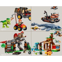 - LEGO Jurassic World Spinosaurus Dinosaur Escape (77982), ages 9+. Recreate the Jurassic Park III scene, planning escape from the rampaging brick-built Spinosaurus.