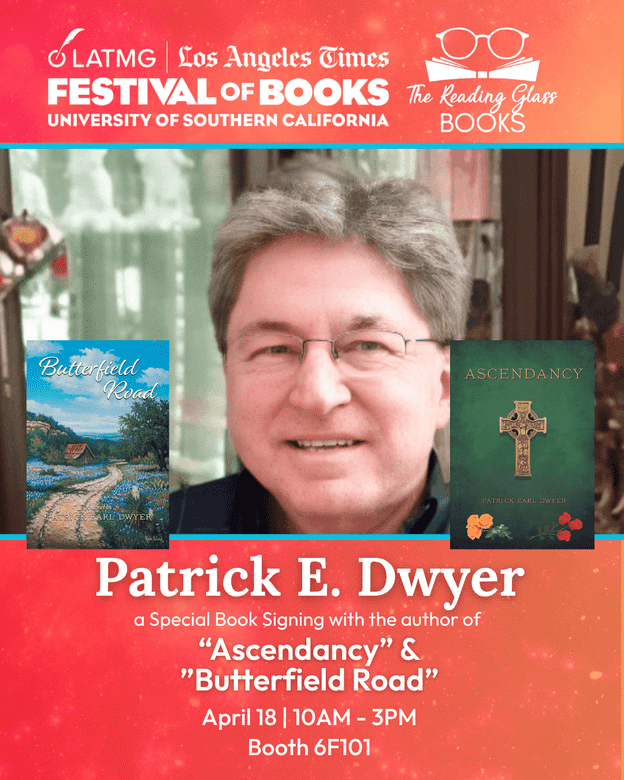 The Reading Glass Books is thrilled to welcome Patrick Earl Dwyer, to Booth #960 in the Black Zone at USC for a book signing at the LA Times Festival of Books on Saturday, April 18, 2026 from 1 p.m. to 3 p.m.