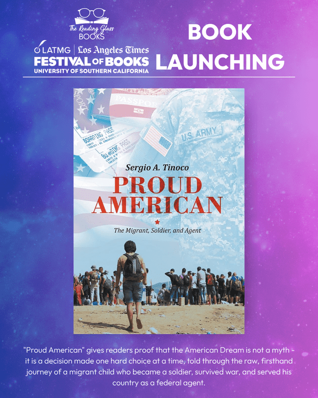 The Reading Glass Books is thrilled to showcase Federal Agent Sergio Tinoco’s “Proud American” at Booth #960 in the Black Zone at USC during the LA Times Festival of Books, on April 18 to 19, 2026.