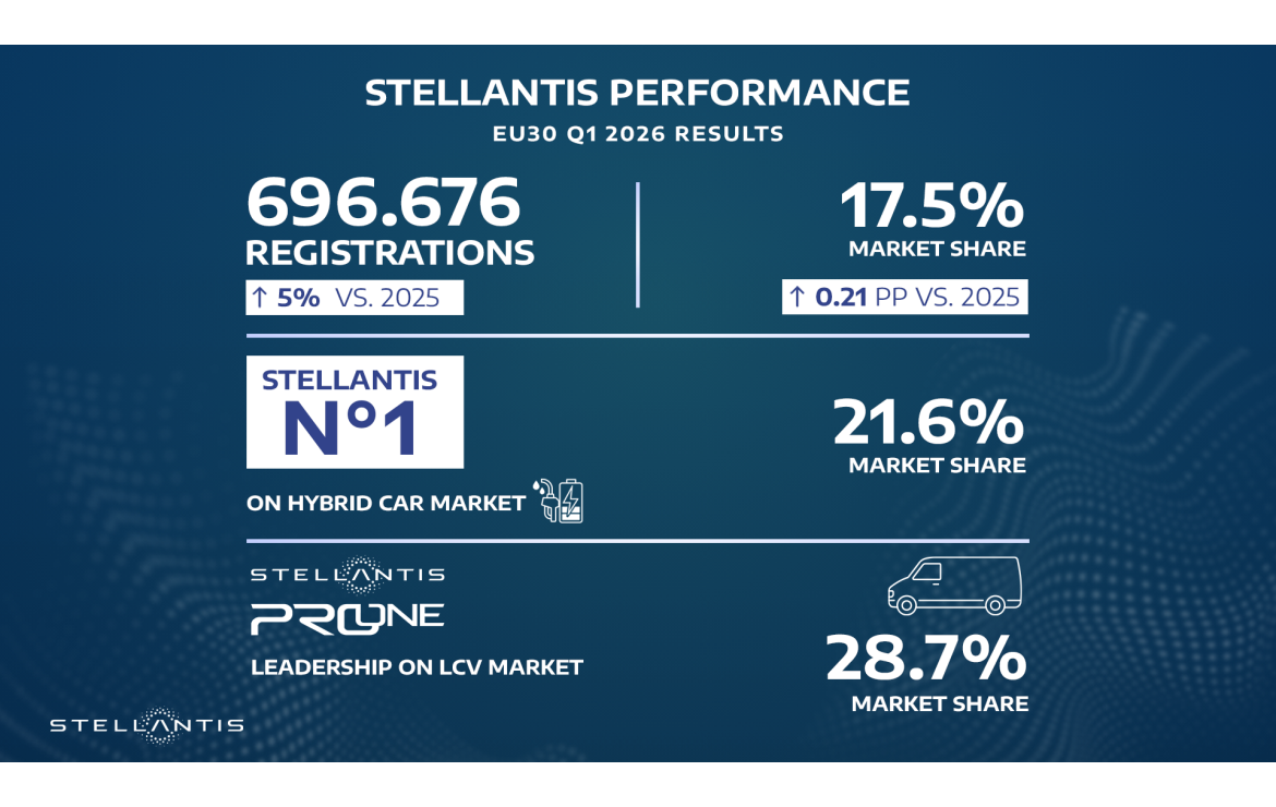 Stellantis closed the first quarter of 2026 with a 5% increase in sales across the EU30 vehicle market