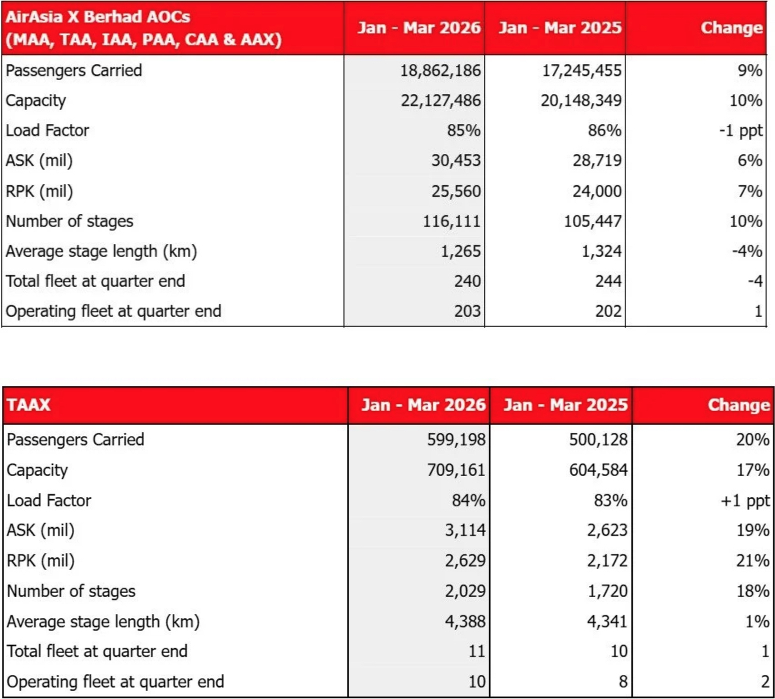 Bo Lingam, Group CEO of AirAsia X, said: “This first quarter of 2026 validates the strength of our consolidated model. Our RPK growth of 7% surpassed ASK growth of 6%, clearly demonstrating the success of our network optimisation, ensuring capacity is deployed where demand is strongest. In response to external fuel pressures, we moved decisively in March to manage our margins through adjusted fares and fuel surcharges.