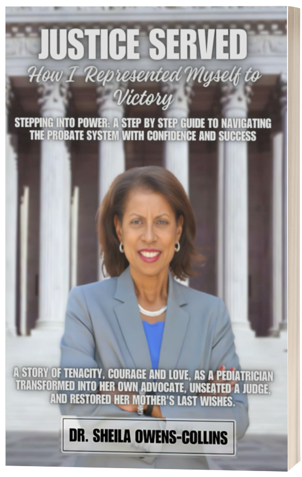 Both a gripping narrative and a step-by-step guide for individuals navigating the often overwhelming probate system, the book chronicles Dr. Owens-Collins’ unexpected journey into probate court following a family dispute over her mother’s guardianship and final will. What started as a deeply emotional and personal crisis transformed into a resolute quest for justice, as she faced systemic obstacles and claimed judicial bias. Determined to overcome the odds, she boldly chose to represent herself, taking her case to the federal court in a remarkable turn of events.