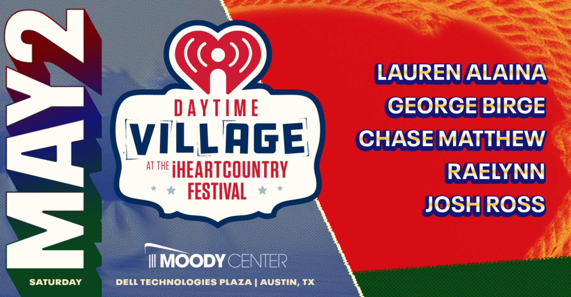 iHeartMedia announced the lineup for the Daytime Village at the 2026 iHeartCountry Festival Presented by Capital One on Saturday, May 2 from 12:30-4:30 p.m. CT at the Dell Technologies Plaza of Moody Center in Austin, TX. The free daytime event will feature performances by Lauren Alaina, George Birge, Chase Matthew, RaeLynn and Josh Ross. The Daytime Village will also feature interactive experiences by iHeartRadio’s brand partners.
