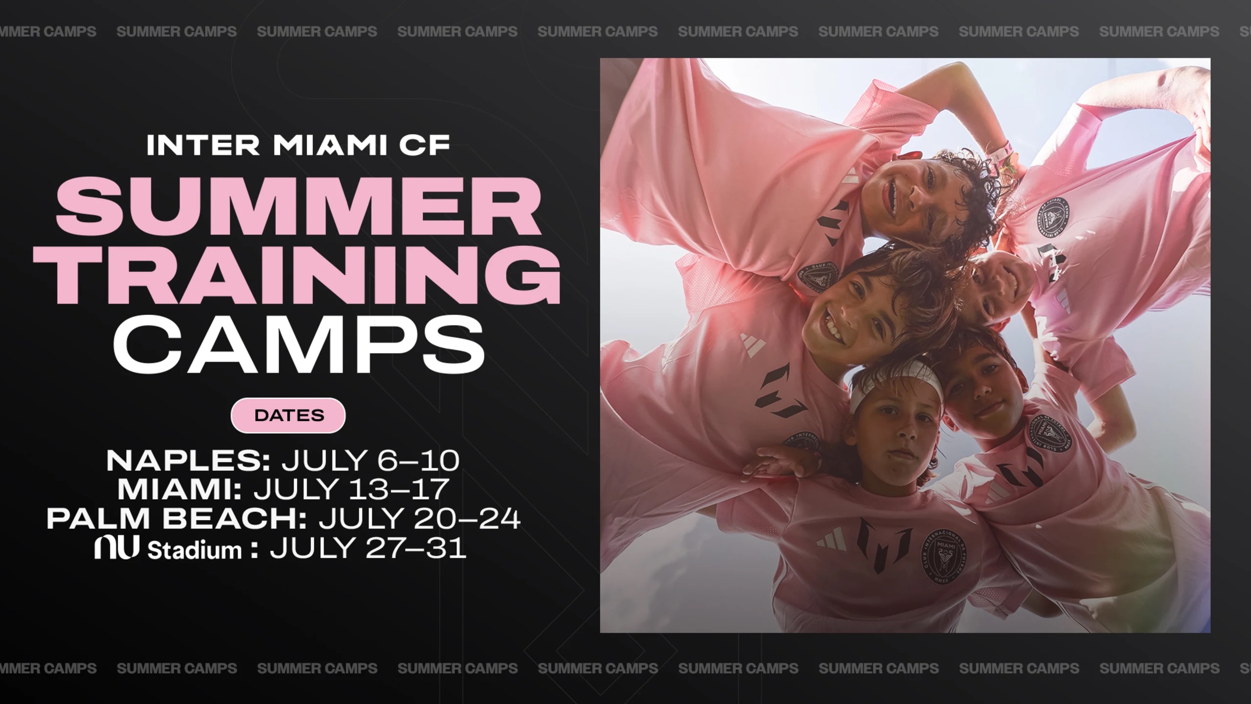 Running from June 8 through July 31, the five-day, co-ed camps will be hosted at multiple locations throughout Florida, including the Club’s Florida Blue Training Center and the newly opened Nu Stadium. Each week-long session delivers 20 hours of high-level training for both field players and goalkeepers, all guided by the official Inter Miami methodology that defines the Club’s distinctive style of play.